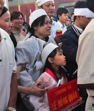 | Khi chiếc quan tài được đưa ra xe tang, bé gái 6 tuổi (con trung tá Lê Hồng Quân) mới nhận ra ba của mình không còn nữa |