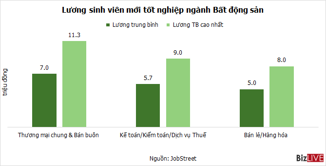 Tuy nhiên, để lên được mức lương này, lao động trong ngành phải bắt đầu từ vị trí của sinh viên mới tốt nghiệp, với mức lương trung bình 5,7 triệu. Con số này thấp hơn lĩnh vực Thương mại chung & Bán buôn tại 7 triệu đồng.