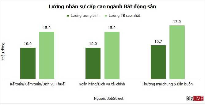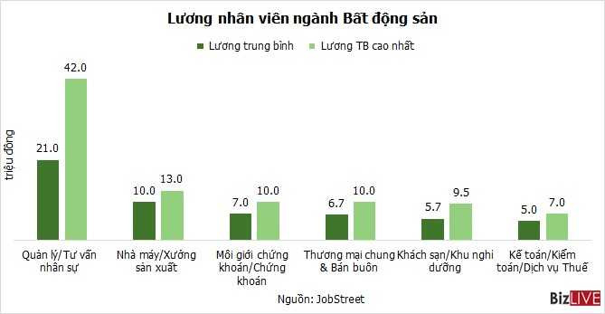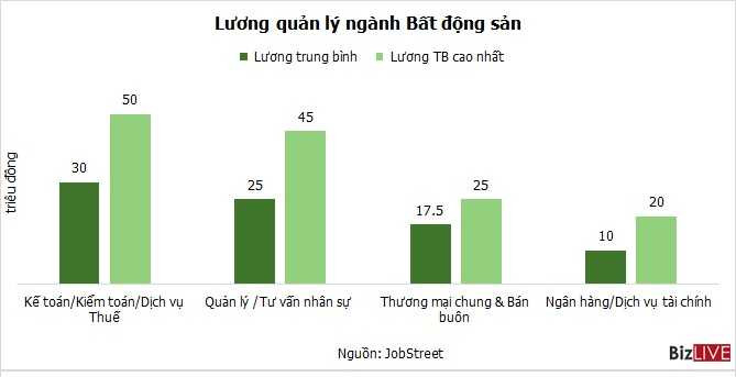 Theo báo cáo bảng lương ngành Bất động sản của trang mạng việc làm JobStreet tiến hành tại các thành phố lớn ở Việt Nam trong năm 2016, mức lương trung bình cao nhất của vị trí quản lý lên đến 50 triệu đồng trong lĩnh vực Kế toán/Kiểm toán/Dịch vụ thuế. Mức lương trung bình của lĩnh vực này là 30 triệu đồng, mặc dù thấp hơn nhưng vẫn cao nhất toàn ngành.