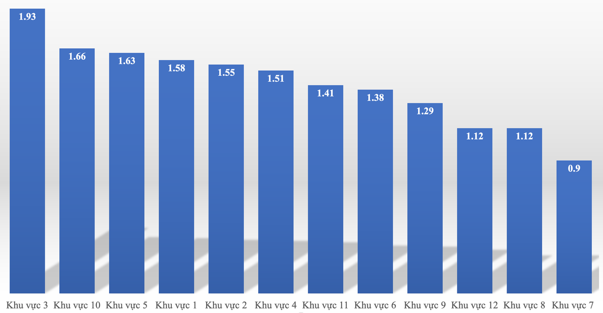 | Khu vực 1 (Ba Đình, Tây Hồ) | 3.060 | 4.830 | 1,58 |