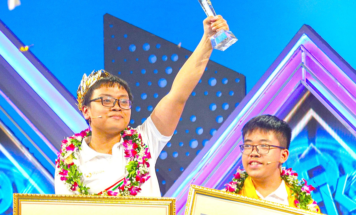 Quán quân Olympia năm 2024 luôn thể hiện sự bình tĩnh và tự tin trong tất cả các phần thi.