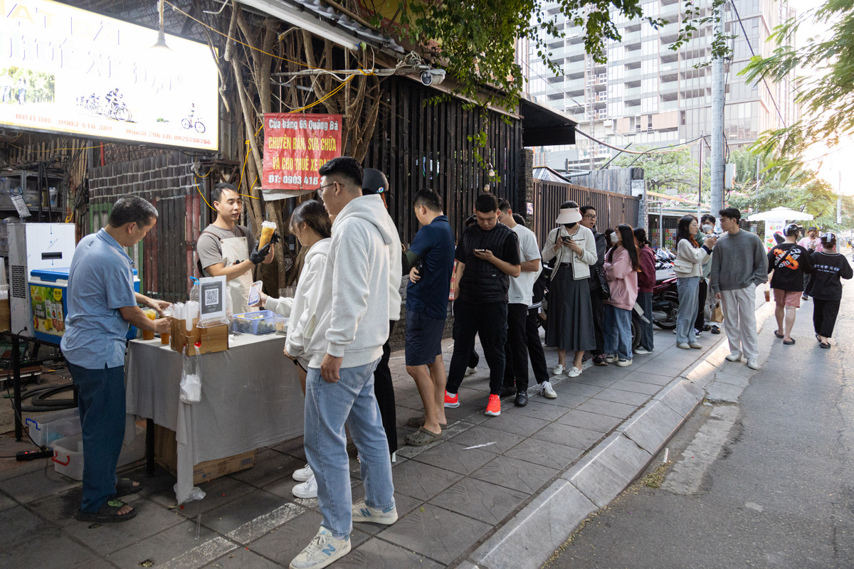 Chủ quán Hoàng Thế Hảo (32 tuổi) cho biết, hằng ngày, hàng trăm lượt khách lui tới tìm mua, phần lớn do tò mò và muốn chứng kiến công đoạn chế biến tại chỗ.
