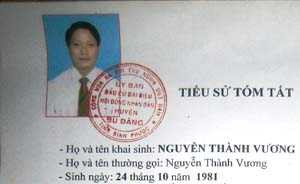 Trong kỳ ứng cử Đại biểu HĐND các cấp vừa qua, ông Vương tự ghi thêm trong bản tóm tắt tiểu sử để được ứng cử đại biểu HĐND huyện Bù Đăng với trình độ chuyên môn là Cử nhân Kinh tế.