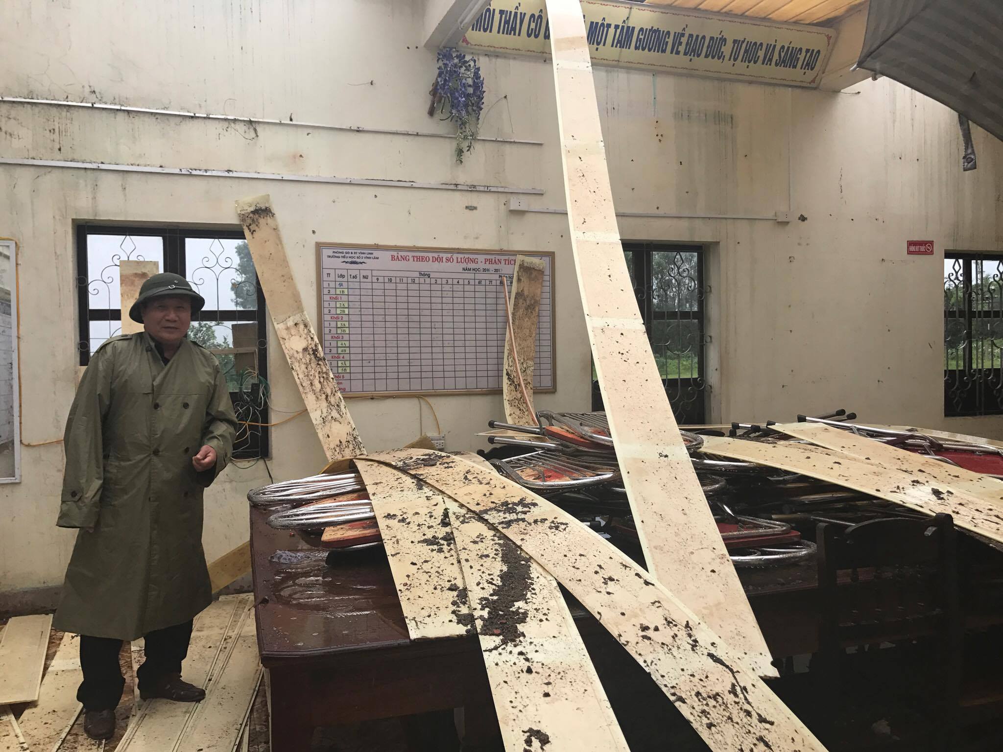 Phòng hiệu trưởng của trường tiểu học này cũng chịu chung số phận. (Ảnh: Nguyễn Vương).