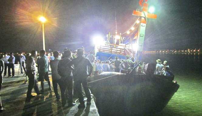 | Tàu cá của ngư dân xã Bảo Ninh về cảng Nhật Lệ đêm 30-4 - Ảnh: L.Giang |