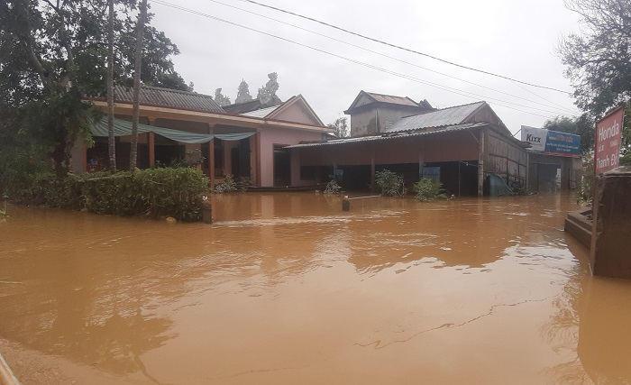 Những ngôi nhà của người dân xã Mỹ Thủy, huyện Lệ Thủy chìm trong biển nước.