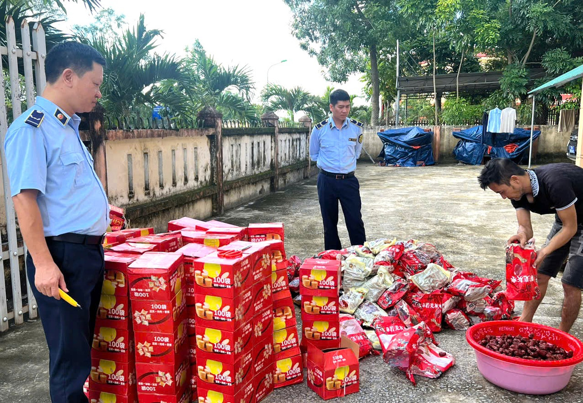 Kết quả khám phương tiện phát hiện trên xe vận chuyển 205 sản phẩm thực phẩm các loại do nước ngoài sản xuất nhập lậu, trong đó có 110 gói táo đỏ sấy khô và 95 hộp bánh quy. Toàn bộ số hàng hóa này đều không có ngày sản xuất, hạn sử dụng và không có hóa đơn, chứng từ chứng minh tính hợp pháp của hàng hóa tại thời điểm kiểm tra.