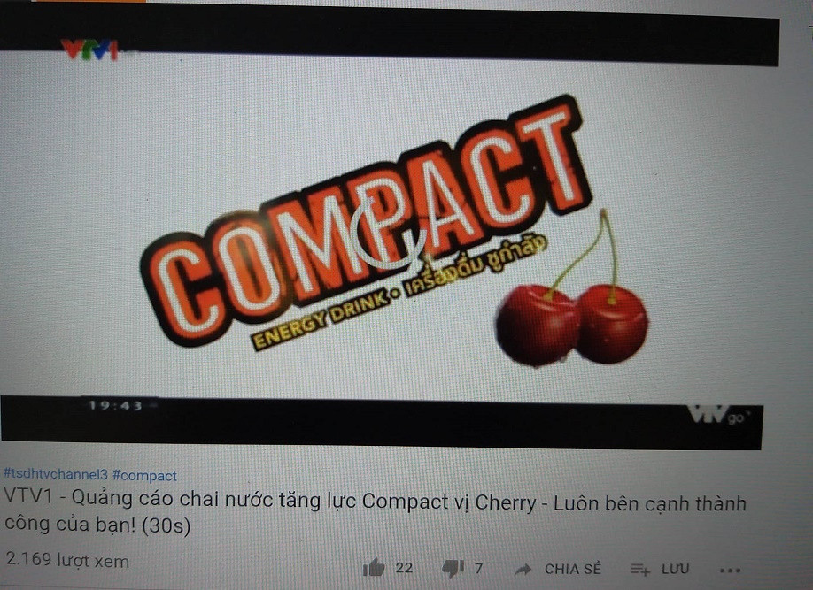 Đoạn quảng cáo về nước tăng lực Compact vị cherry hiện đang thu hút hàng nghìn lượt xem trên YouTube, đồng thời được phát sóng trên VTV, trong đó có khung giờ vàng buổi tối.