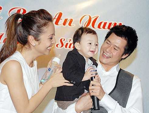 Quang Dũng (phải) và Jennifer Phạm trong ngày thôi nôi bé Bảo Nam vào năm 2009.