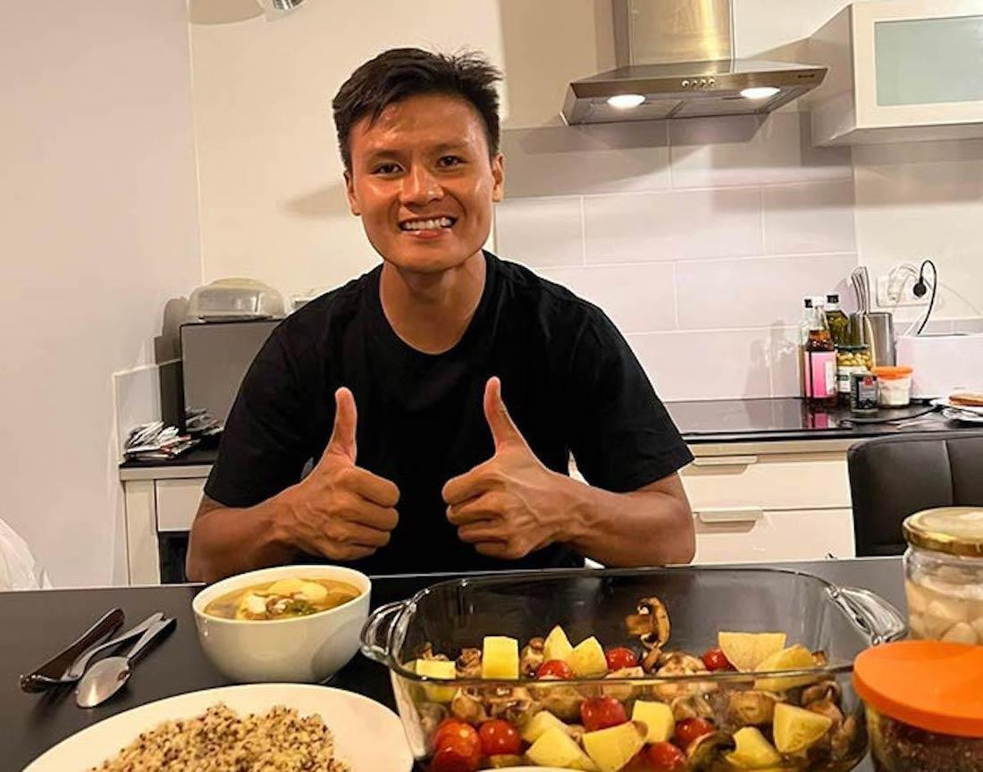 Nguyễn Quang Hải tự nấu bữa ăn tại Pháp.