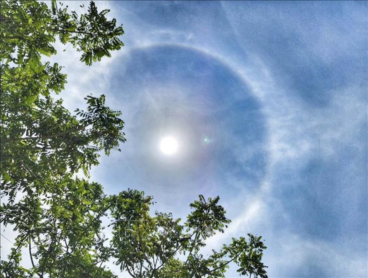 Xuất hiện hiện tượng quầng mặt trời tại Điện Biên. Ảnh: TTXVN phát