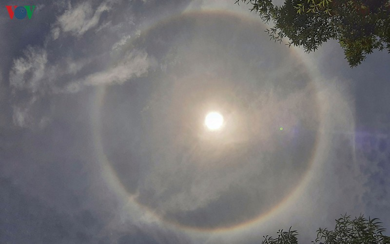 Quầng sáng bắt đầu xuất hiện khoảng 11h30 và kéo dài trong thời gian sau đó. Mặt trời được bao quanh bởi một vòng tròn gồm bảy màu: đỏ, da cam, vàng, lục, lam, chàm, tím và sắp xếp ngược lại thứ tự màu sắc của cầu vồng.