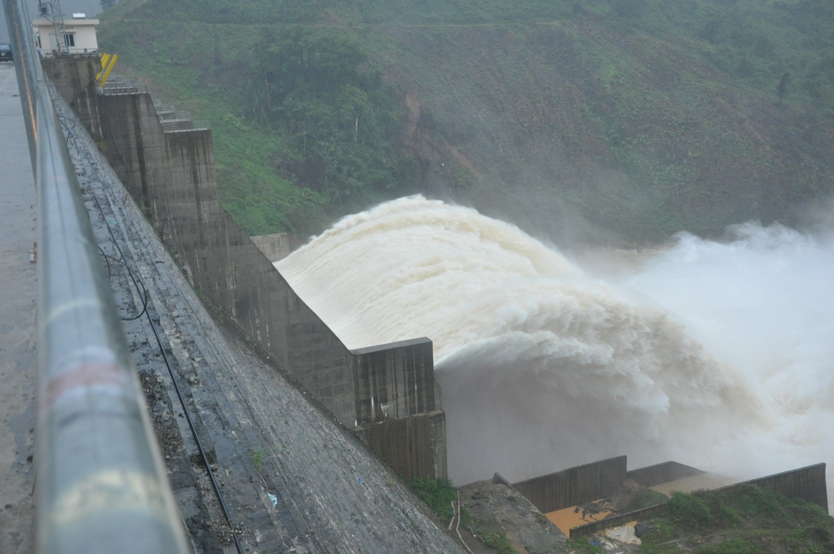 Thủy điện A Vương, xã Macooih, huyện Đông Giang, ghi nhận lượng nước đổ về lòng hồ là 1.962m3/s nên đã vận hành điều tiết hồ chứa xả qua tràn 592m3/s và chạy máy 77m3/s.