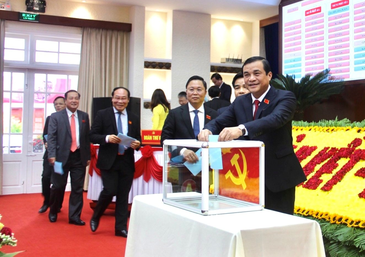 Các đại biểu bỏ phiếu bầu Ban Chấp hành Đảng bộ tỉnh Quảng Nam khóa mới.