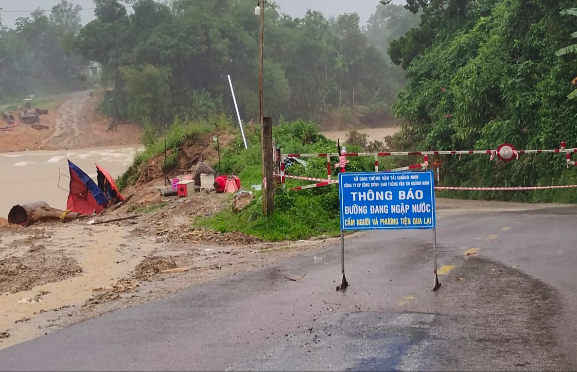 Theo ông Vũ, tại 2 khu vực trên, nước đang chảy rất xiết, gây chia cắt giao thông giữa 2 huyện Bắc Trà My và Nam Trà My. Lực lượng chức năng đã cắm biển, giăng dây cấm người và phương tiện qua lại.
