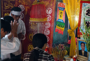 Tiếng khóc nấc từ những gia đình người dân sau cơn lũ dữ (Trong ảnh: Đám tang nạn nhân xấu số Dương Ngữ bị lũ cuốn ngày 16/11)