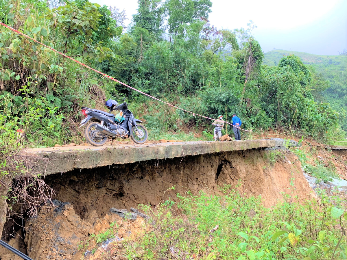 Điểm sạt lở tại đèo Eo Chim đi Trà Nham (tỉnh Quảng Ngãi) do mưa lũ gây ra vào cuối tháng 10 vừa qua