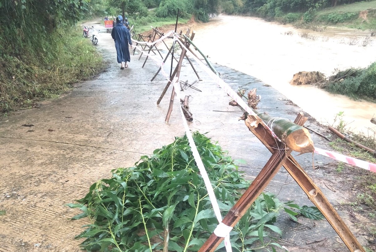 Để đảm bảo an toàn giao thông qua khu vực, chính quyền địa phương đã huy động lực lượng tổ chức chốt chặn ở gần nơi xảy ra sạt lở, nứt mặt đường, không cho người và phương tiện lưu thông.