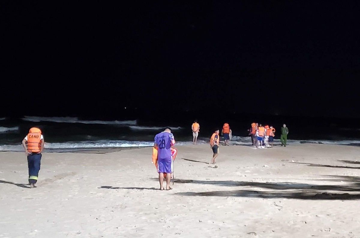 Lực lượng chức năng cùng người dân địa phương tìm kiếm nam sinh bị sóng lớn cuốn. (Ảnh: Đ.T)