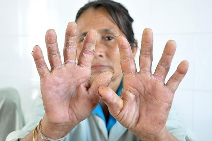 Những trường hợp mắc hội chứng viêm da dày sừng bàn tay, bàn chân đang được điều trị theo phác đồ của Bộ Y tế (ảnh: laodong).
