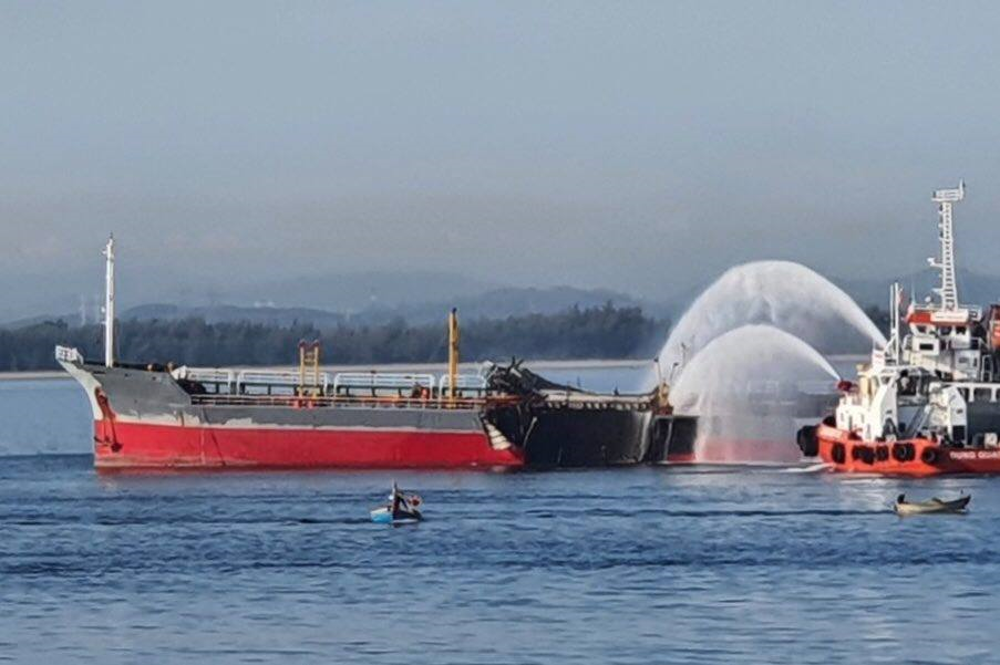 Tàu chờ dầu phát nổ khiến 1 thuyền viên mất tích. (Ảnh: V.P)