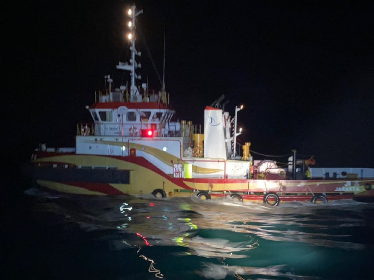 Theo đó, khoảng 23h đêm 31/10, lực lượng tuần tra Bộ đội Biên phòng tỉnh Quảng Ngãi phát hiện tàu kéo số hiệu YDB4388/9689873, ký hiệu Jakata đang kéo 1 xà lan cách khu vực vùng biển xã Đức Lợi (huyện Mộ Đức, tỉnh Quảng Ngãi) khoảng 2 hải lý.