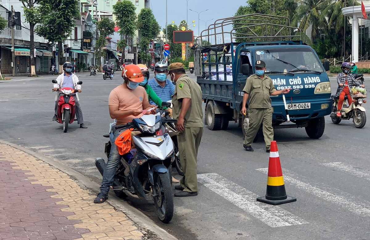 Lực lượng chức năng tăng cường tuần tra, kiểm soát trong thời gian TP Quảng Ngãi và 8 huyện, thị thực hiện giãn cách xã hội theo Chỉ thị 16.