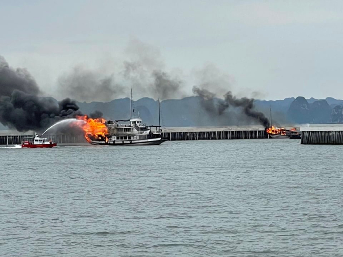 Khoảng hơn 13h ngày 22/11, hai chiếc tàu du lịch vỏ gỗ bốc cháy dữ dội khi đang neo đậu trên vịnh Hạ Long (Quảng Ninh). Thời điểm bốc cháy, trên tàu không có khách du lịch.