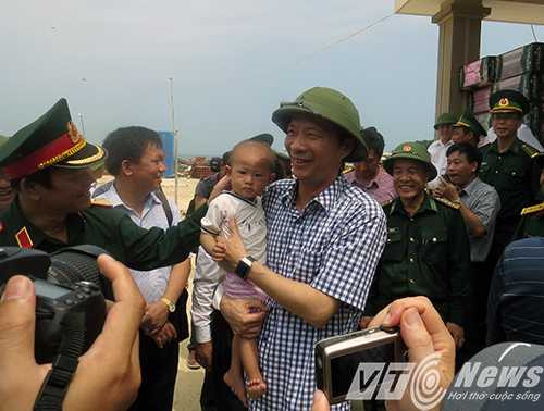 | Ông Nguyễn Văn Đọc - Bí thư Tỉnh ủy Quảng Ninh (người bế cháu bé) ra thăm, kiểm tra công tác xây dựng nhà ở cho 30 hộ dân đầu tiên lập nghiệp trên đảo Trần, nằm ở vị trí tiền tiêu vùng Đông Bắc Tổ quốc, thuộc huyện Cô Tô, hồi tháng 9/2014 - Ảnh MK. |