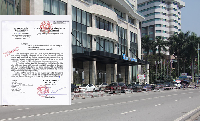 Sáng 12/3, UBND tỉnh Quảng Ninh phát công văn hỏa tốc chỉ đạo tạm dừng các hoạt động kinh doanh dịch vụ văn hóa nhằm tăng cường các biện pháp cấp bách, phòng chống dịch, đảm bảo an toàn cho nhân dân, du khách và cộng đồng, hạn chế các hoạt động tập trung đông người, giảm thiểu tối đa nguy cơ lây lan dịch Covid-19.