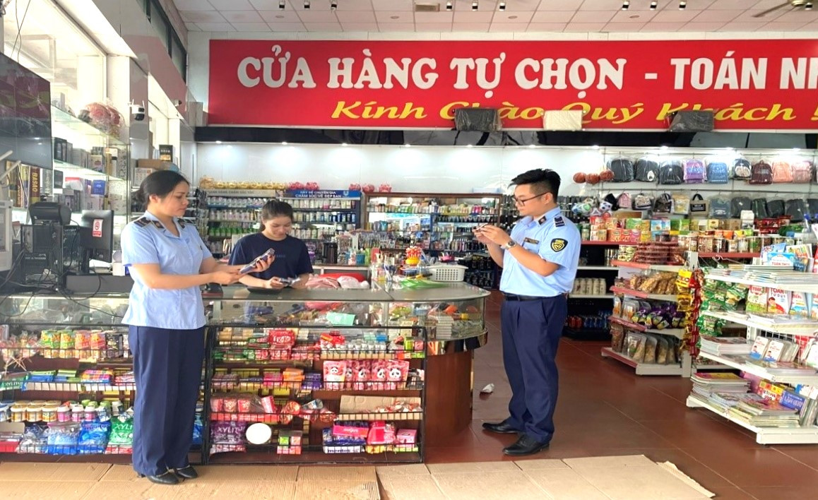 Lực lượng QLTT kiểm tra hàng hóa tại một cửa hàng