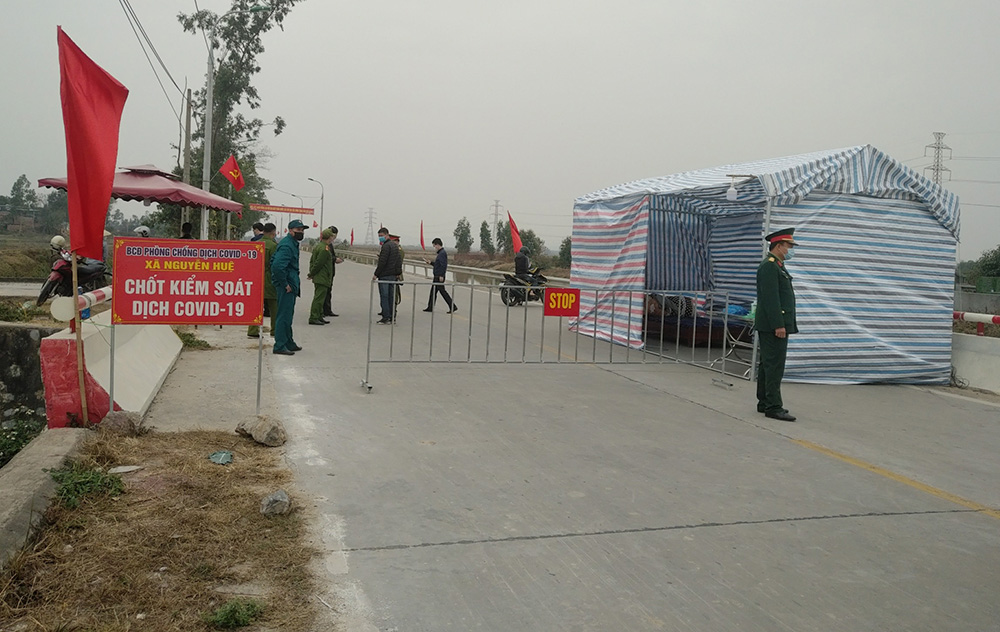 Chốt kiểm soát dịch COVID-19 tại xã Nguyễn Huệ, thị xã Đông Triều.