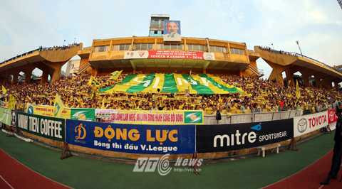 18h: CĐV SLNA một lần nữa tạo ấn tượng mạnh trên sân Hàng Đẫy khi phủ vàng khán đài B sân đấu này và biến lợi thế sân nhà của Hà Nội T&T thành con số 0.
