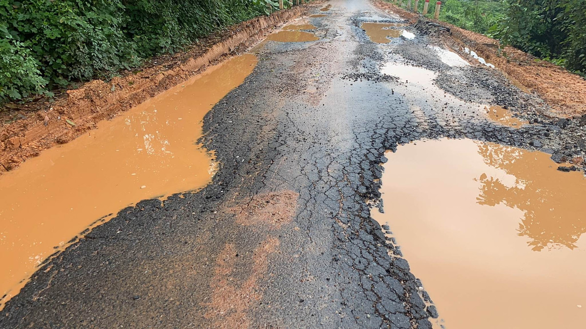 Một đoạn trên tuyến đường Phú Lệ hỏng nghiêm trọng, bê tông nhựa bị vỡ nát, mặt đường lún sâu và khi mưa đến thì đọng thành những vũng nước lớn gây nguy hiểm cho người tham gia giao thông.