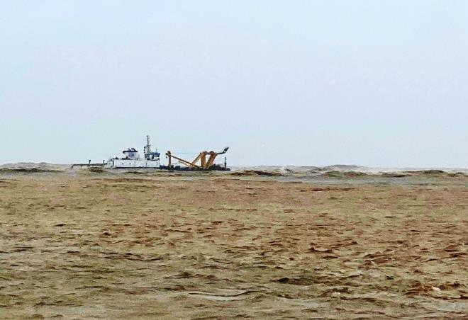 Tàu Vietship 01 đang mắc cạn trên biển Cửa Việt (tỉnh Quảng Trị). (Ảnh: L.Q.H).