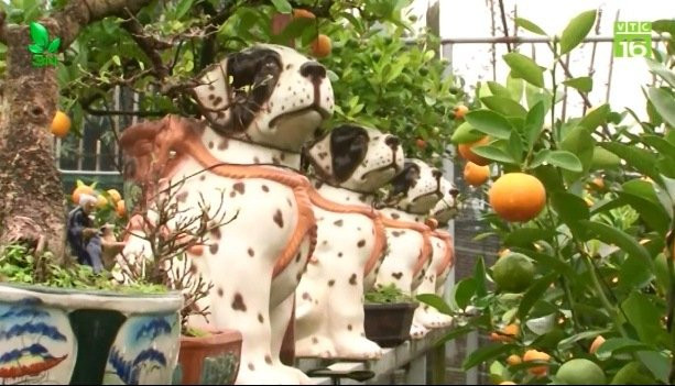 Năm nay, nghệ nhân Trương Ngọc Xuân (chủ nhân vườn cây cảnh ông Trương ở quận Bắc Từ Liêm, Hà Nội) tạo hình chú chó đeo giỏ quất bonsai trên lưng tuyệt đẹp.