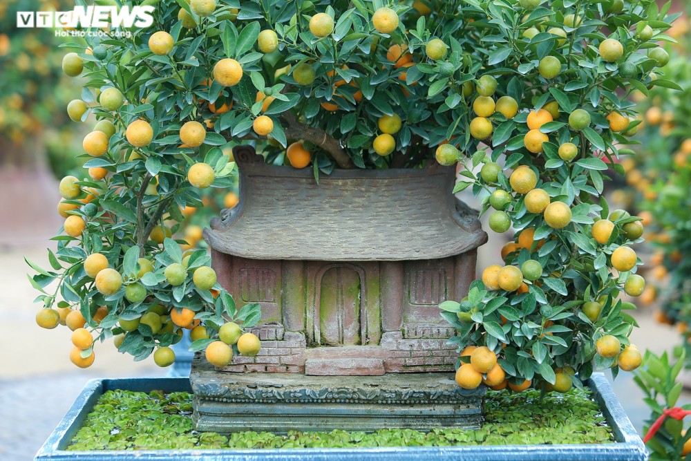 Một trong những loại quất cảnh độc đáo nhất có thể kể đến là quất bonsai nhà cổ. Chúng là những tác phẩm nghệ thuật được tạo thành từ những cây quất trĩu quả vàng ươm kết hợp mô hình nhà cổ độc đáo.