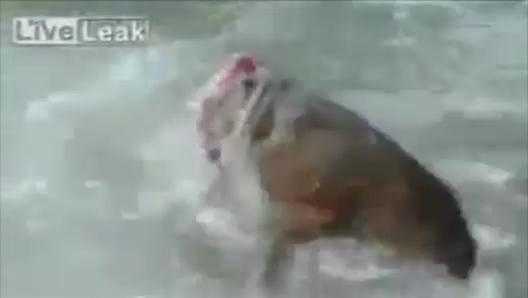 Con cá khổng lồ ngoi lên bờ rỉa mồi trước sự kinh ngạc và sợ hãi của đám đông đang giăng câu.