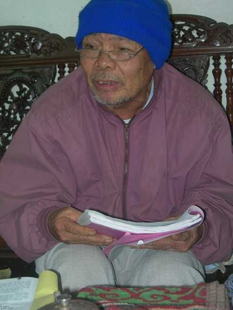 | Cụ Đặng Văn Thức bên từ đường dòng họ |