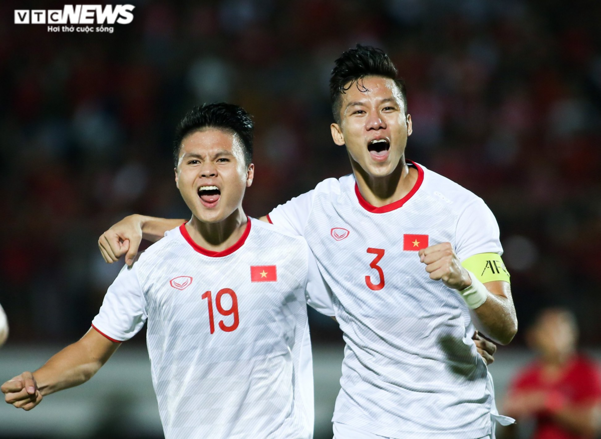 Quế Ngọc Hải (áo đỏ) trong màu áo Viettel.