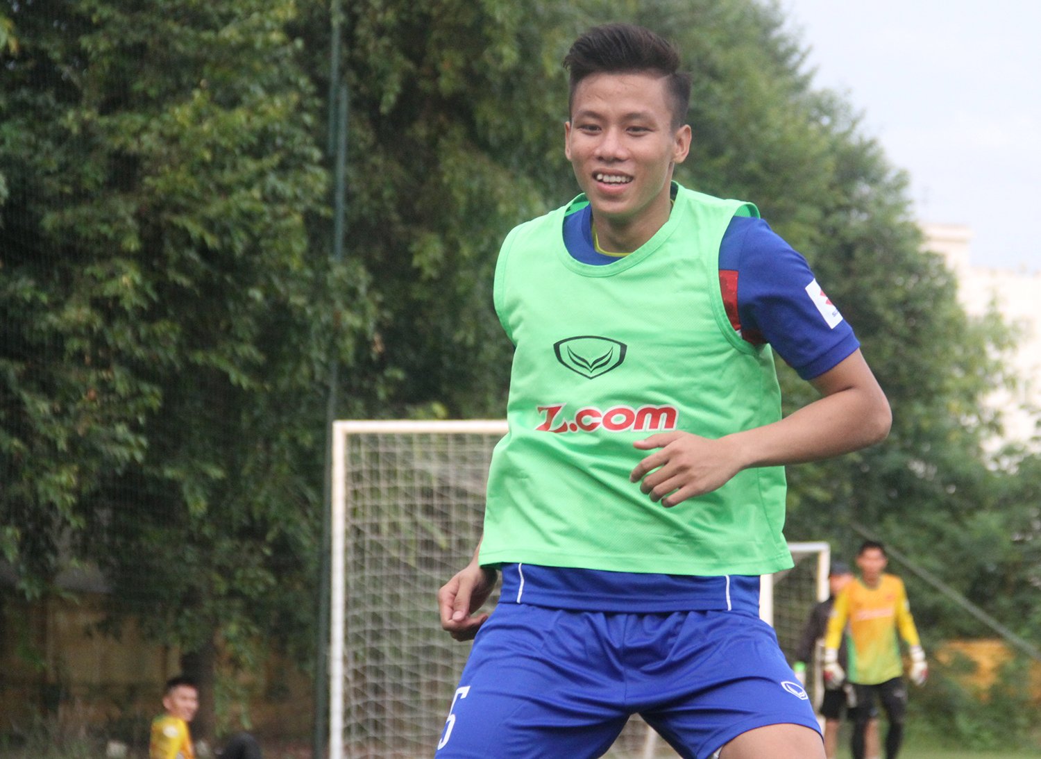 Quế Ngọc Hải (trái) đã có buổi tập đầu tiên cùng các đồng đội chiều 7/10.