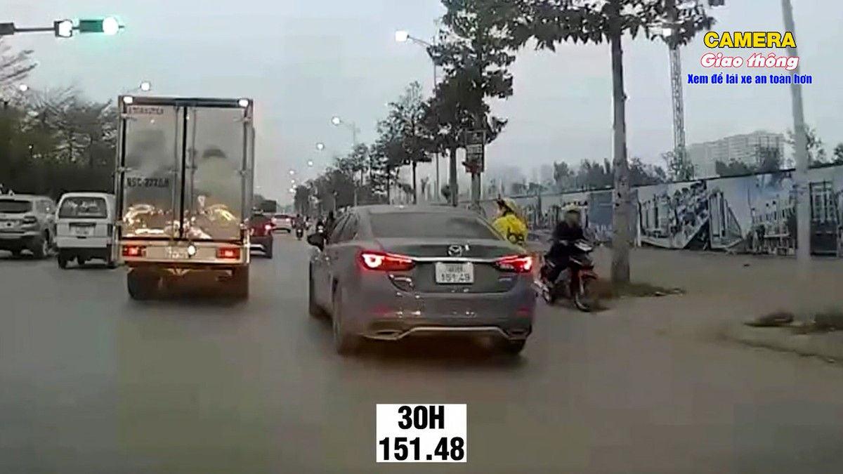 Tài xế điều khiển ô tô biển số 30H-151.49 bất ngờ bỏ chạy sau khi gây tai nạn với người đi xe máy trên đường Thanh Hà - Cienco 5, Hà Nội.