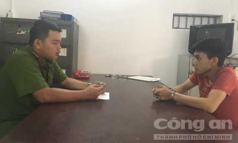 Đối tượng Lê Thanh Sang đang khai báo hành vi phạm tội