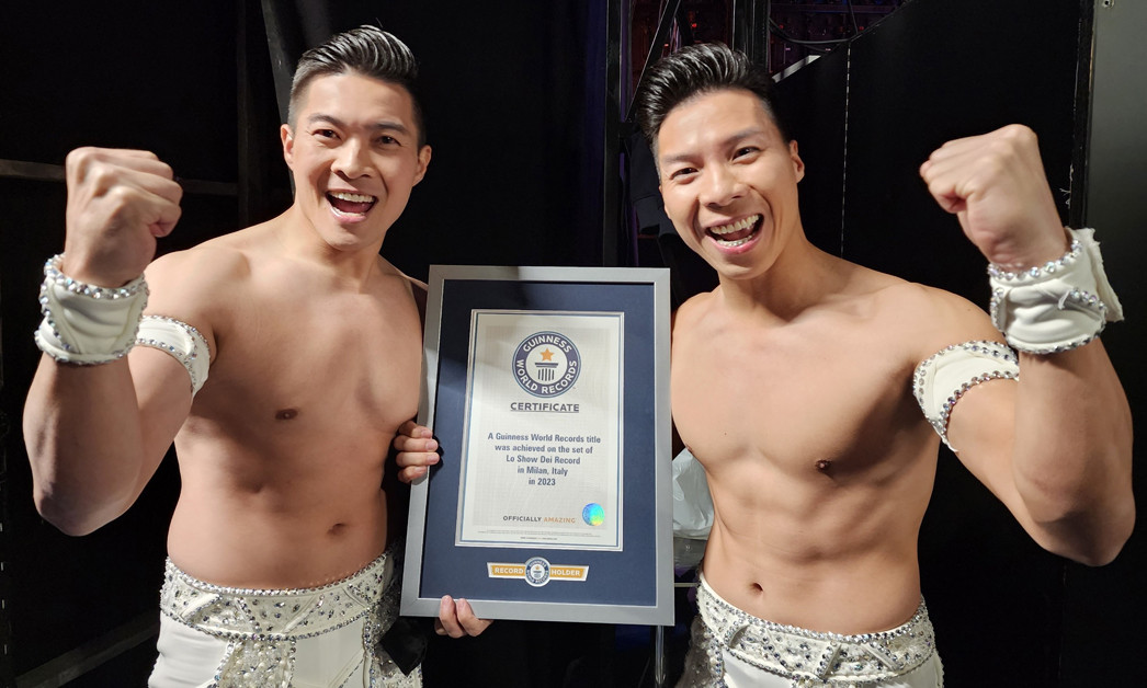 Tối 3/2 (theo giờ Việt Nam), hai anh em “Hoàng tử xiếc” Giang Quốc Cơ - Giang Quốc Nghiệp đã tham gia xác lập Kỷ lục Thế giới Guinness tại thành phố Milan (Italia). Cả hai bịt mắt chồng đầu đi lên và xuống trên cầu thăng bằng dài 10 m chỉ với 40 cm chiều rộng. Theo quy định của BTC, anh em nhà họ Giang có 3 lần thực hiện. Tuy nhiên, họ đã hoàn thành ngay trong lần đầu tiên với 1 phút 55 giây. Vượt qua những khó khăn, thành quả đạt được là phần thưởng cực kỳ xứng đáng cho Quốc Cơ - Quốc Nghiệp.