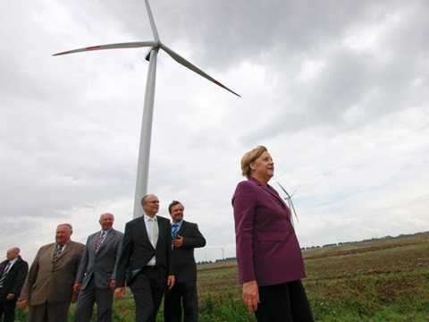 | Thủ tướng Đức Angela Merkel và các quan chức đi thăm cánh đồng tuabin gió |