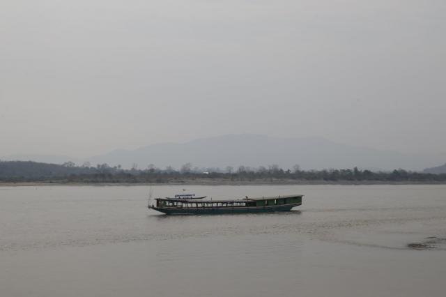 Một chiếc thuyền di chuyển ở khu vực gần cảng Chiang Saen, Thái Lan ngay gần Tam giác Vàng.