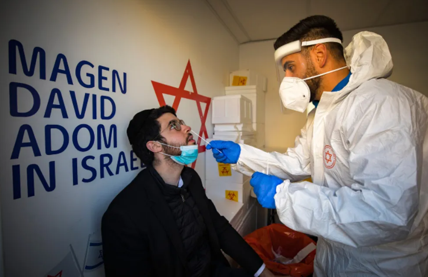 Người dân lấy mẫu tại một điểm xét nghiệm ở Jerusalem. (Ảnh: ITV News)