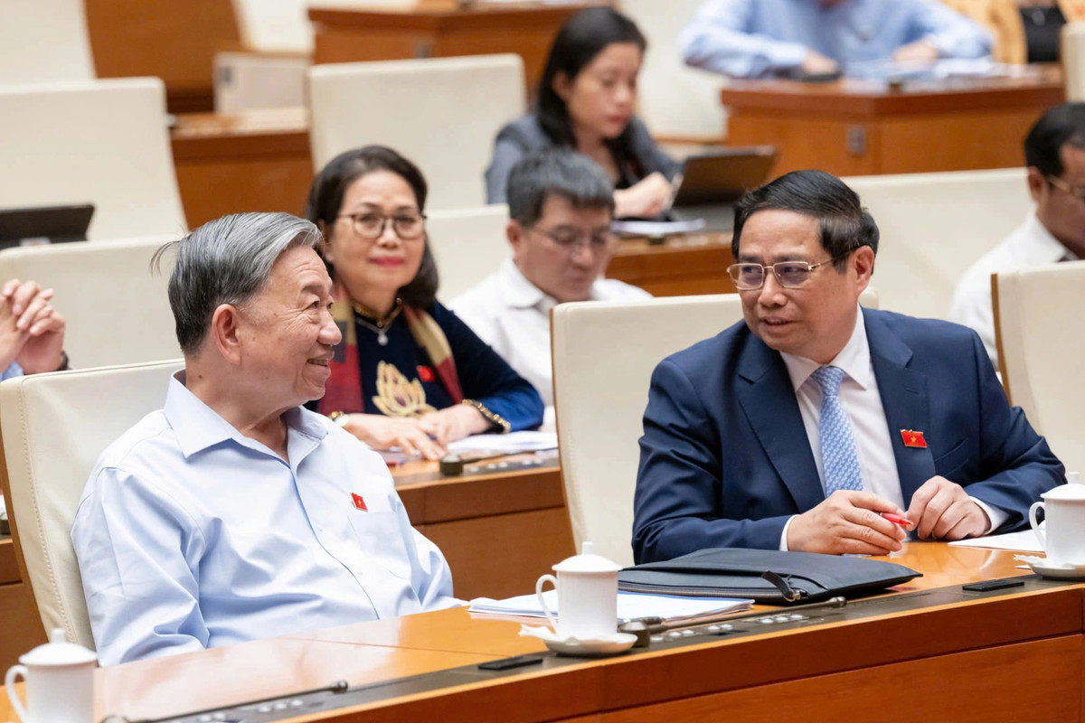 Tổng Bí thư Tô Lâm và Thủ tướng Phạm Minh Chính tại Kỳ họp thứ 8 Quốc hội khóa XV. (Ảnh: quochoi.vn)
