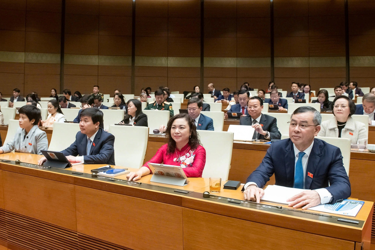 Các đại biểu Quốc hội bấm nút thông qua Nghị quyết quy định về xử lý một số vấn đề liên quan đến sắp xếp tổ chức bộ máy Nhà nước. (Ảnh: quochoi.vn)