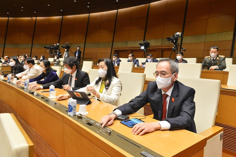 Các đại biểu Quốc hội bấm nút biểu quyết.